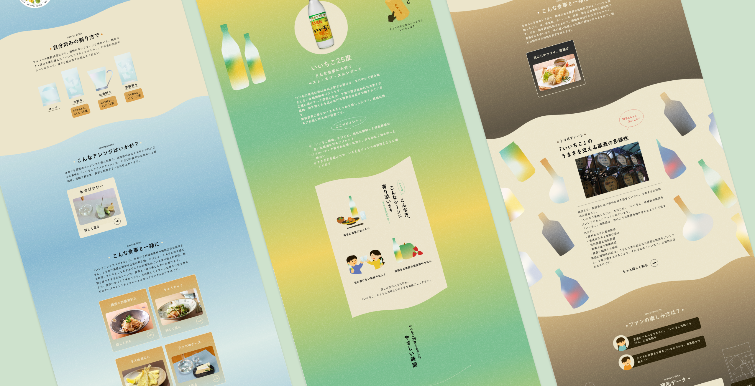 「やさしい酔い」をテーマに、いいちこの魅力を伝えるHPを制作いたしました。
